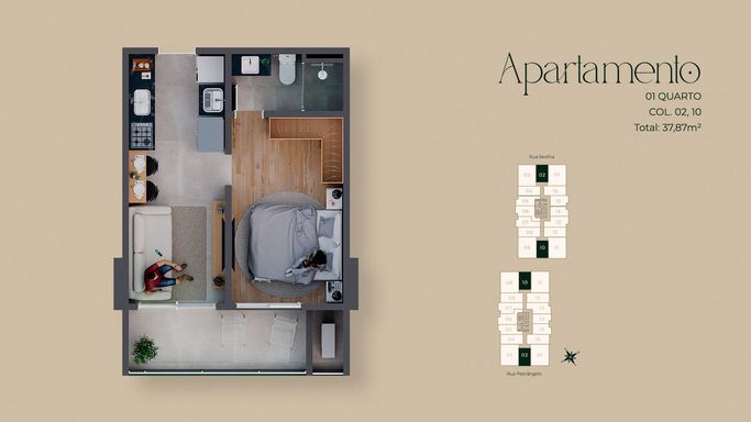 O imóvel em destaque é da coluna 01 com 70,67m² de área privativa