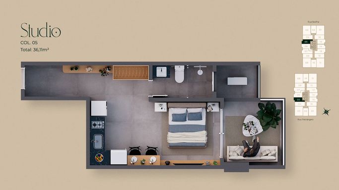 - 35,03m² - 42,46m² de área privativa